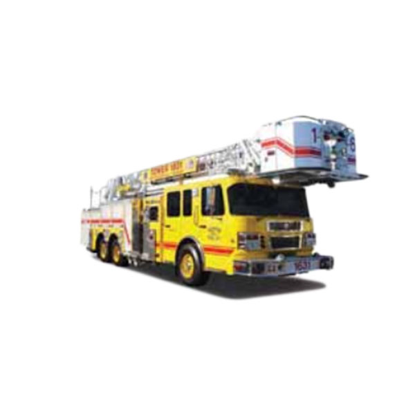Escaleras o plataformas para rescate en alturas con monitores en punta desde 1500 GPM para el combate de incendio.